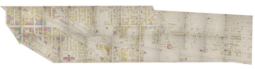 These are the Sanborn maps covering the East Falls area. Sanborn Maps were created by the Sanborn Map Company from the late 19th through mid 20th centuries for the reference of fire insurance companies. They are incredibly powerful tools for researchers, giving detailed information on individual buildings. These maps were published in bound volumes which can be somewhat confusing to reference, especially if researching neighborhoods. For this project every available version of the Sanborn maps that covered the East Falls neighborhood was stitched together in Photoshop to aid in the creation of the digital model used for the tour. These are available for reference and download below.